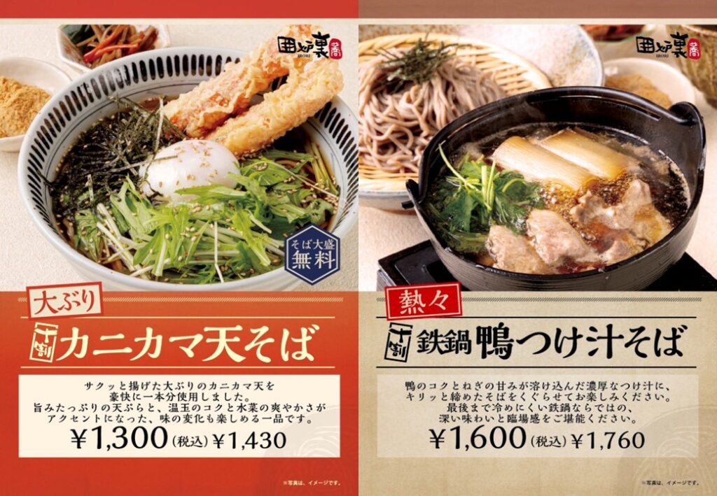十割そば囲炉裏新メニュー開始のお知らせ!