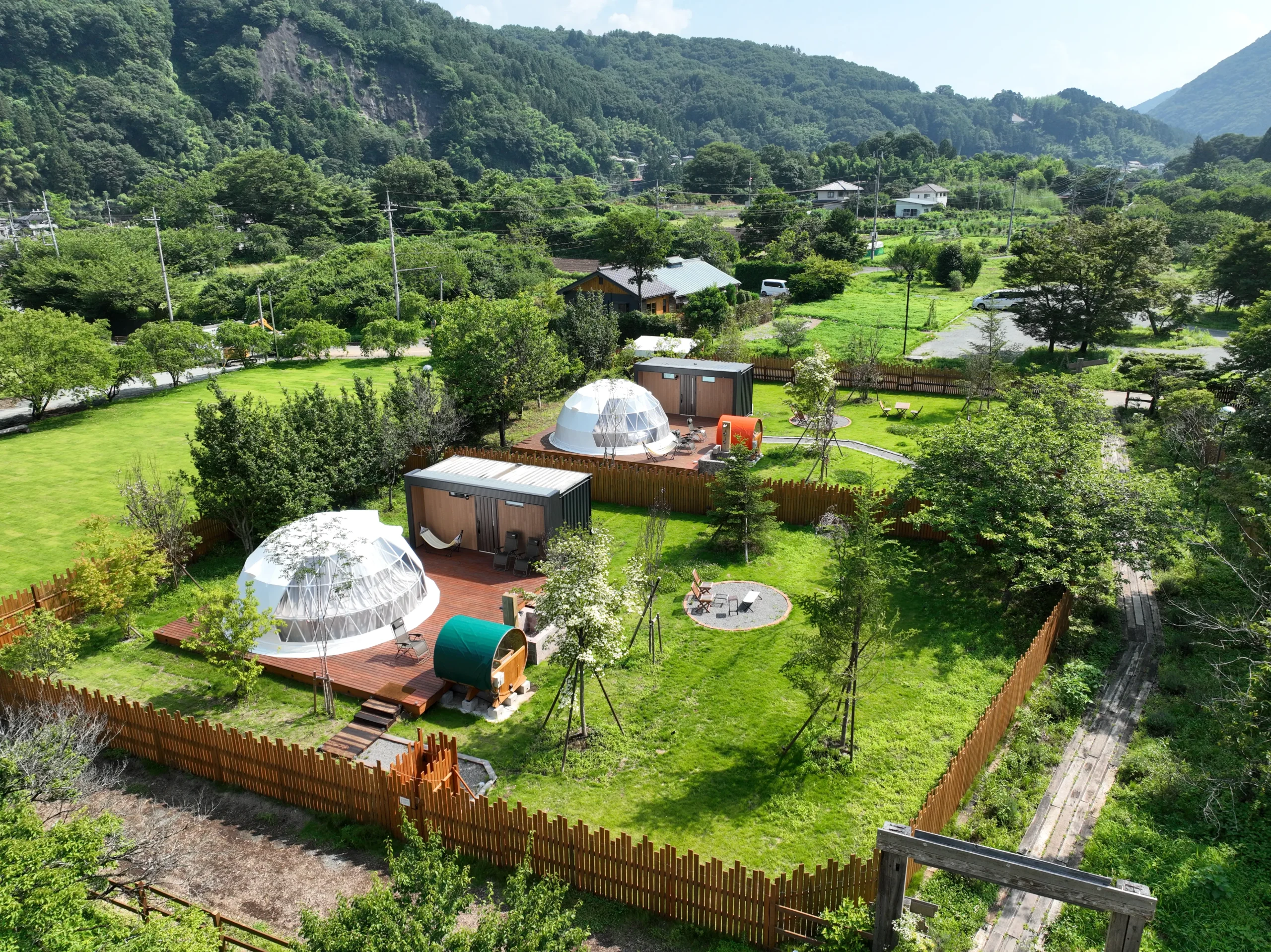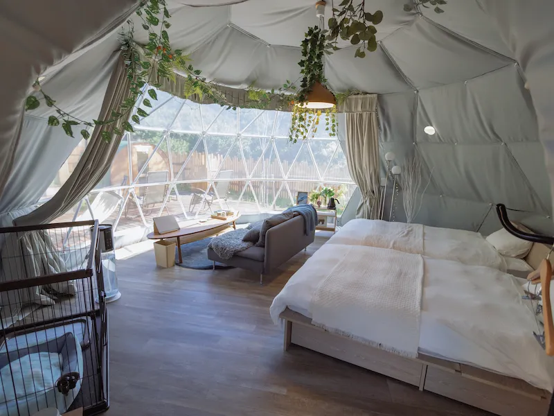 水沼ヴィレッジのペット同伴OKドームテントは、愛犬やペットと一緒に滞在できる特別な空間。