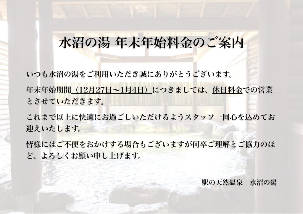 いつも水沼の湯をご利用いただき誠にありがとうございます。