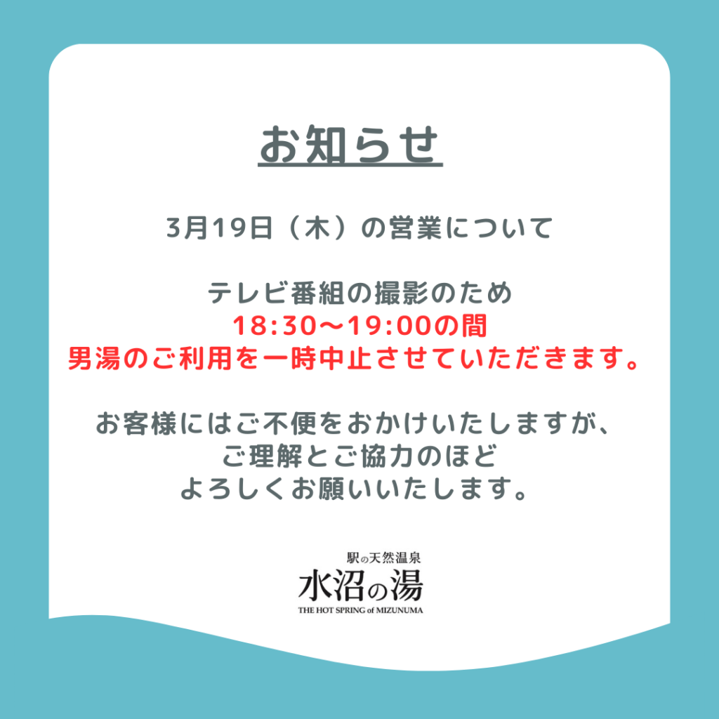 いつも水沼の湯をご利用いただき、誠にありがとうございます。